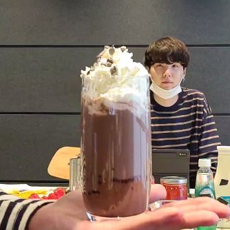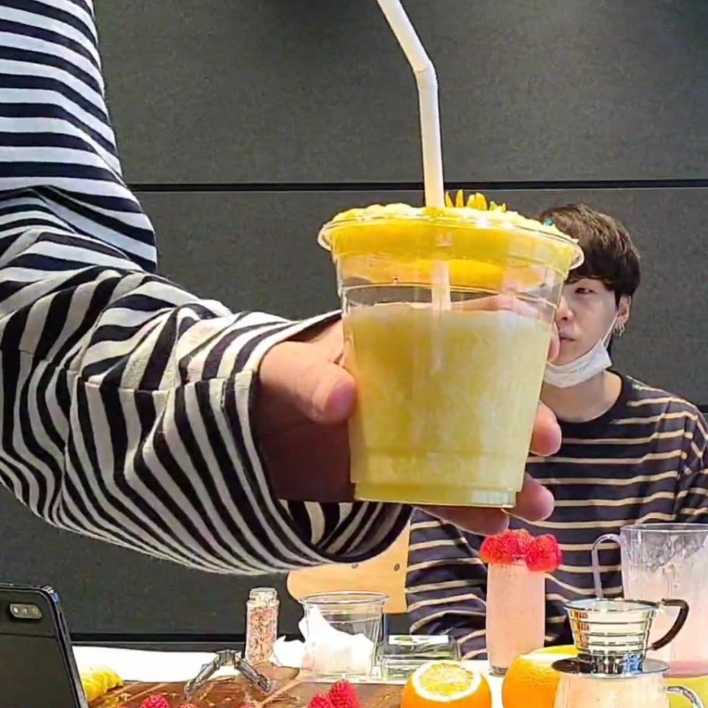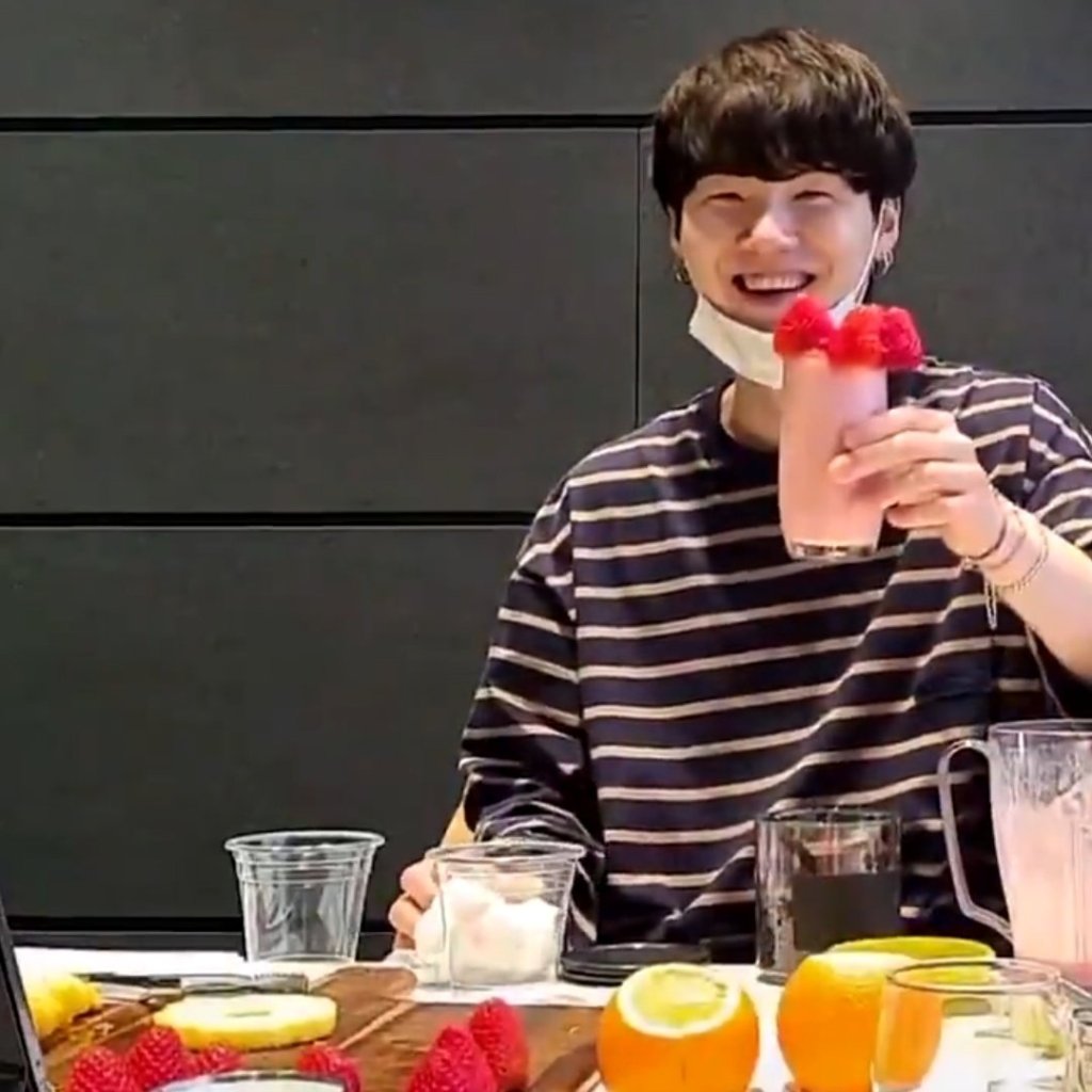 Yoongi made a strawberry drink and showed it off saying “isn’t it great?”