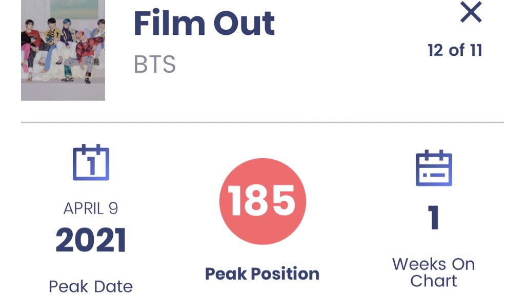 BTS’ “Film out” Debuts at #185 on The Billboard Global Excl. US Chart With Only 13 Hours Of Tracking