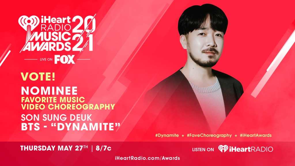 BTS’ choregrapher Son Sung Deuk nominated for #FaveChoreography at the 2021 #iHeartAwards! for the song “Dynamite”