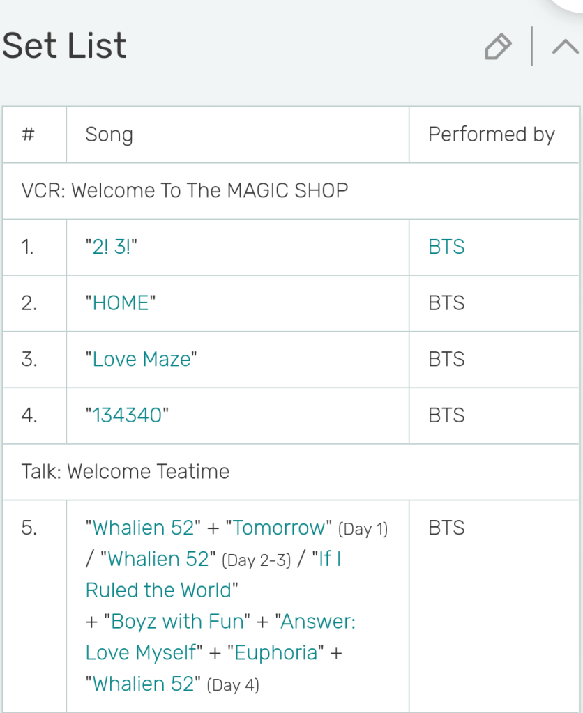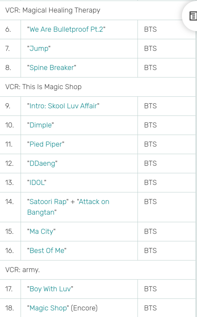 These are mere suggestions and should be taken lightly as we wait for any more information from BTS. The set lists are what they performed then, so for 2021, we will have to wait either for official communication or watch during the online concert on 17th April.