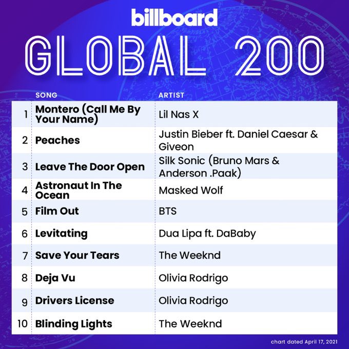 When BTS’ Japanese single “Film Out” was released on April 2, 2021, the song started off by breaking several records on music charts and BTS’ own records for Japanese singles. “Film Out” has this week debuted at #5 on Billboard Global 200 and #3 on Billboard Global 200 Excluding U.S. BTS have now charted songs in 3 different languages (Korean, English and Japanese) in all major Billboard Charts.