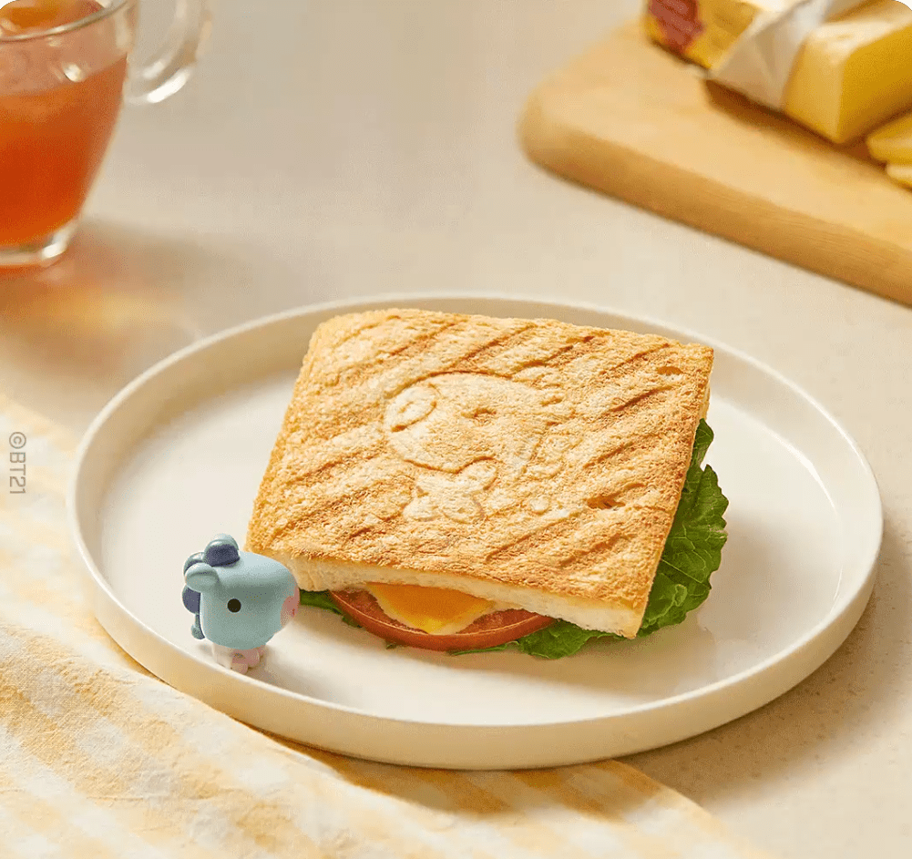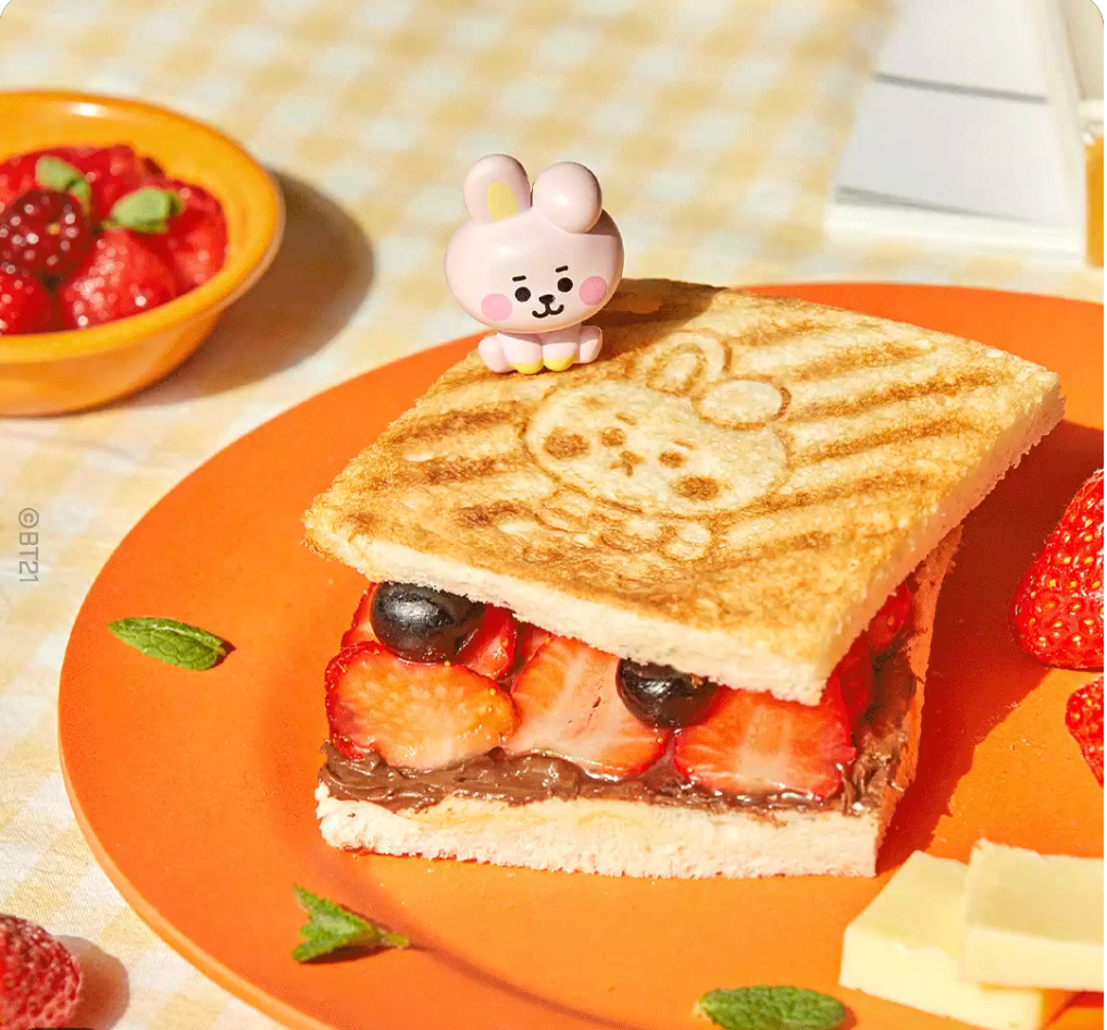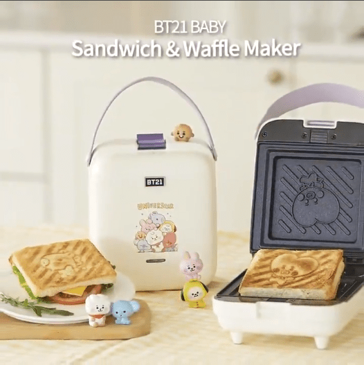 BTS are set to release their “BT21 BABY Sandwich and Waffle Maker” on 22nd April 2021 based on all the characters. The sandwich and waffle maker imprints the BT21 characters on the bread when it is pressed.