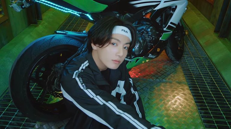 While Jungkook himself is not seen riding the motorbike, the inclusion of it in the scene evokes the same feeling of exhilaration and thrill. The connection between Jungkook and the bike serves as a metaphor for the fearless attitude he embodies, both in his music career and in his personal pursuits. It’s a subtle, yet powerful addition to the ad that speaks to his versatility and ability to captivate through both visuals and symbolism.
