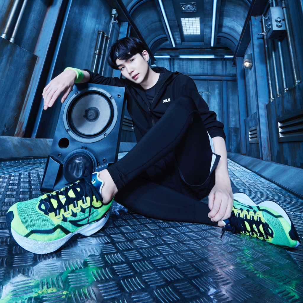 His fashion styling in the campaign is also worth noting. SUGA wears the RUNNER’S INSTINCT: NEURON footwear and FILA gear with effortless cool. The clothes move with him, never stealing attention from his performance but instead becoming a part of it. The designs are sleek, modern, and functional, perfectly matching the campaign’s theme of momentum and rhythm. Every item he wears looks like it belongs to him, like he could walk off set and into a recording studio or a performance hall without needing to change a thing.