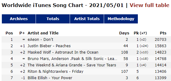 “#1 on iTunes in 76 countries#1 on the iTunes Worldwide chart 5m+ views on YouTube. The title song Don’t (ft. RM) got unbelievable results only a day & a half after it was released. I am deeply thankful to the fans who love me & esp grateful for the amazing support from ARMY” eAeon