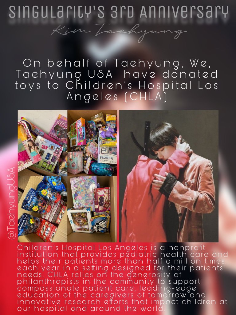 On behalf of Taehyung, We have donated toys to Children’s Hospital Los Angeles (CHLA).