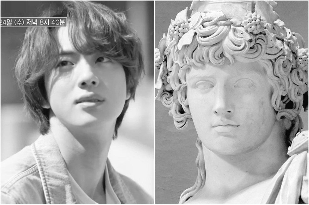 Jin’s resemblance to the Greek ideal is not just a matter of aesthetics; it is also a reflection of the way he carries himself. In Greek art, statues were often used to convey a sense of dignity and grace, and the figures portrayed were imbued with an almost divine presence. Jin, too, carries himself with an air of elegance and poise that elevates his beauty to a level of reverence. Whether he is performing on stage, interacting with his fans, or simply being himself, there is a sense of grace and sophistication that surrounds him, much like the statues of the gods that graced the temples of ancient Greece.