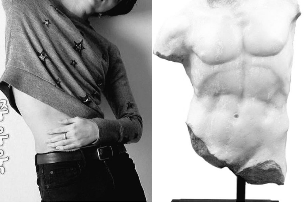 The Greeks, renowned for their admiration of the human form, believed the human body to be both a secular and sacred subject for artistic endeavor. Their gods were portrayed in human form, reflecting the perfect balance between the divine and the mortal. The Greeks saw beauty in symmetry, proportion, and elegance, and their sculptures embody these ideals. In much the same way, Jin’s features seem to encapsulate the classical standards of beauty, making him a living embodiment of these ancient ideals. His face, with its sharp jawline, high cheekbones, and symmetrical features, is reminiscent of the sculptures of Greek gods and heroes, where perfection was not just sought but achieved.