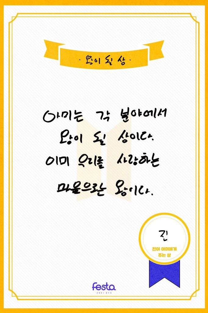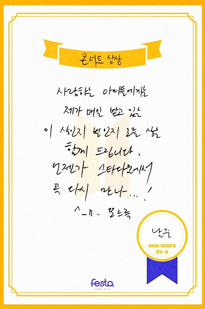 To the ARMYs I love, I’d like to give this award I receive everyday though I don’t quite know if this is an award or punishment. Let’s definitely meet at a stadium someday…!^_ㅠ ddoreueuk** *상 is award and 상상 is imagination/imagining so it’s wordplay **ddo-reu-euk is the sound of tears dropping
