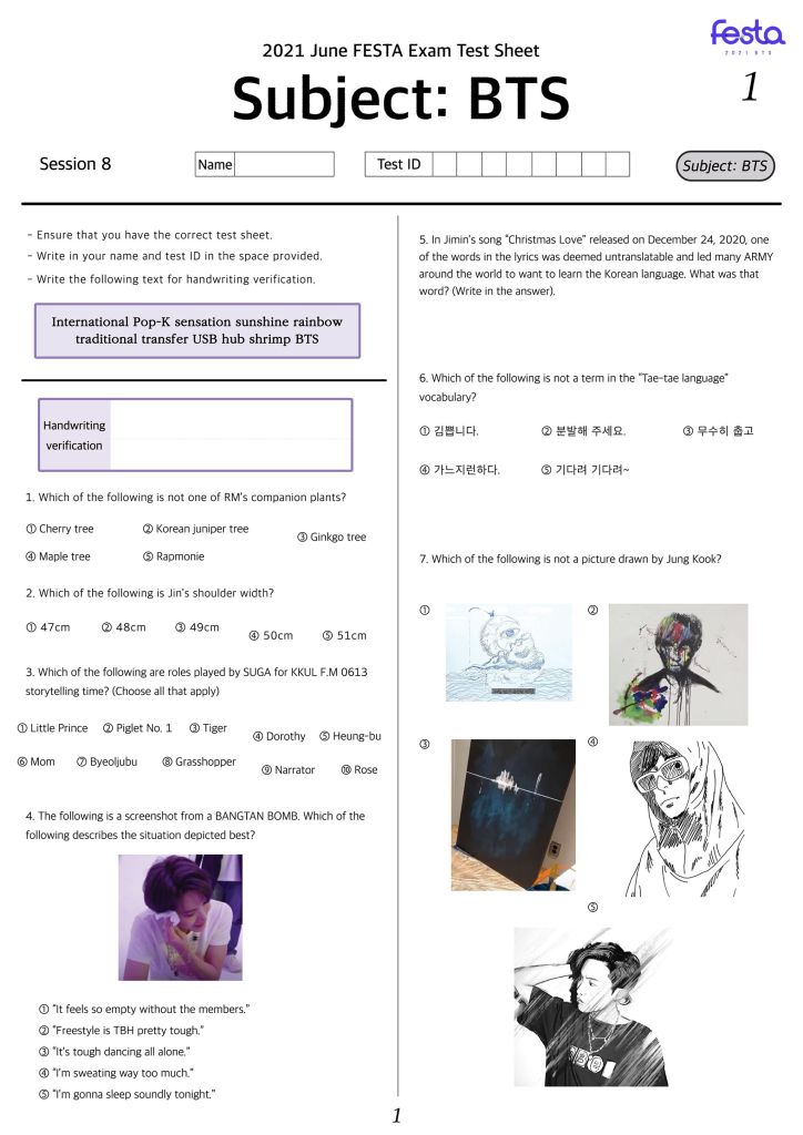 On 10th June BTS shared, “FESTA Examination” which is an examination about BTS. This exam gave ARMY the chance to find out whether they know BTS as much as they say they do. BTS also took the exam to find out how much of their history or lives they knew or remembered.