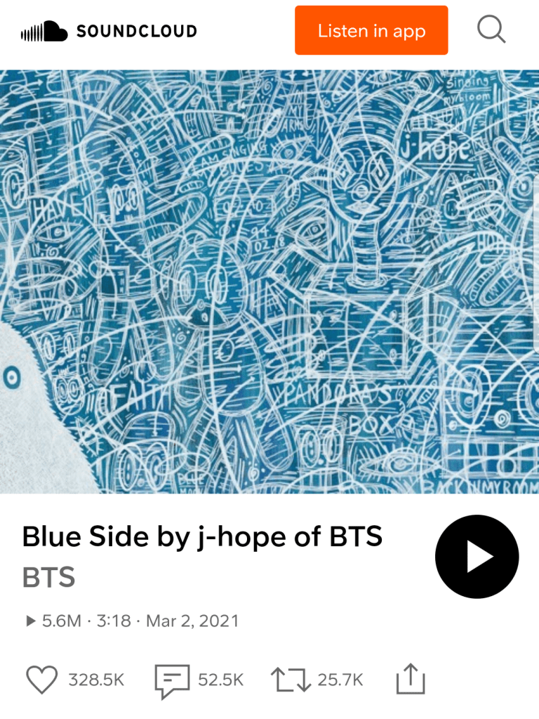On March 1, j-hope surprised fans with a 2021 version of “Blue Side (Outro)” on the third anniversary of his first mixtape, Hope World. In his letter he wrote,