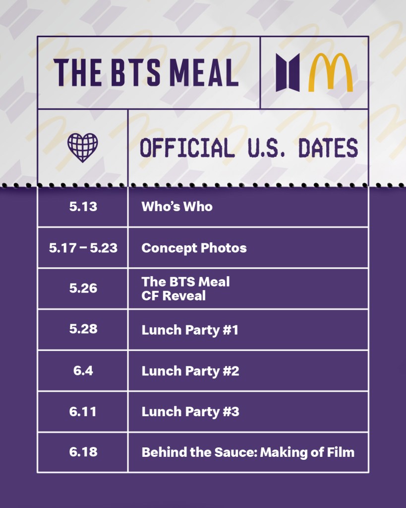 McDonalds have released the last event on their BTS MEAL schedule which is the behind scene making of the BTS MEAL ad campaign. 11th May 2021 McDonald’s shared the “BTS Meal” schedule that includes, events starting on 13th May to the release date on 26th May and the party goes on until 18th June for the release of “Behind the sauce.