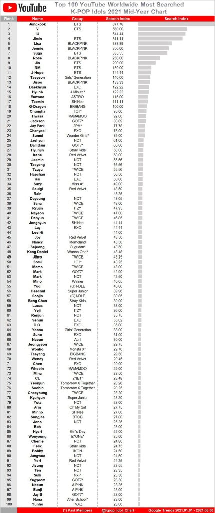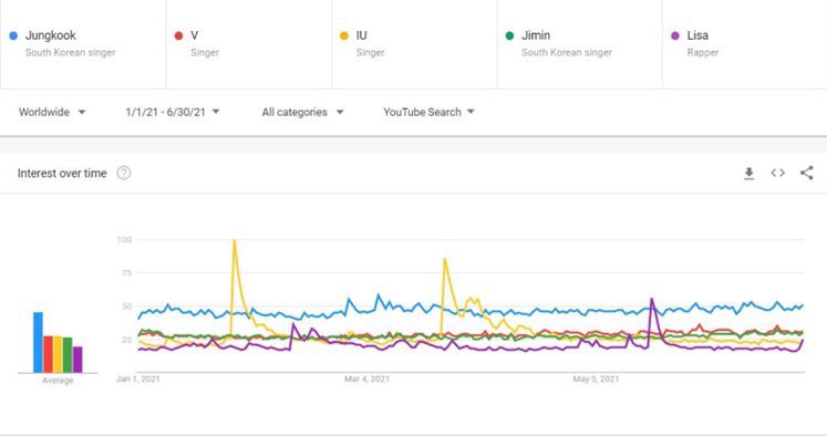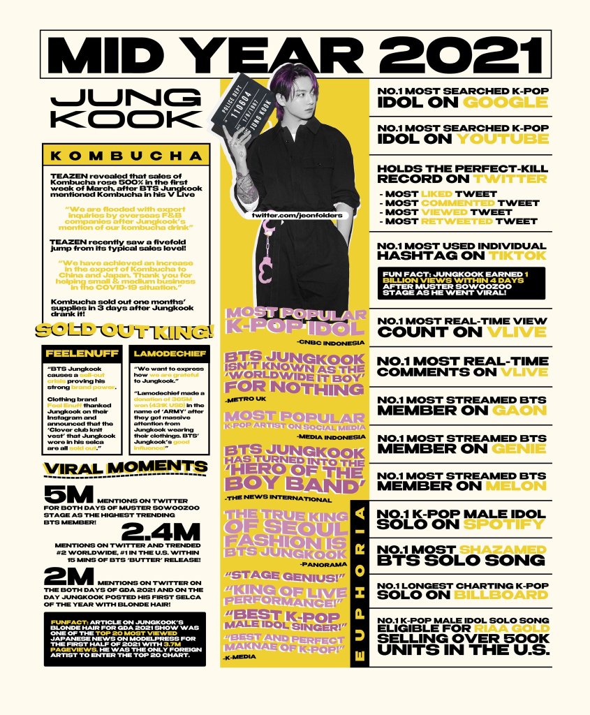 Jung Kook had also earlier topped the “Top 100 Most Searched K-pop Idols on Google Worldwide 2021 Mid-year chart”