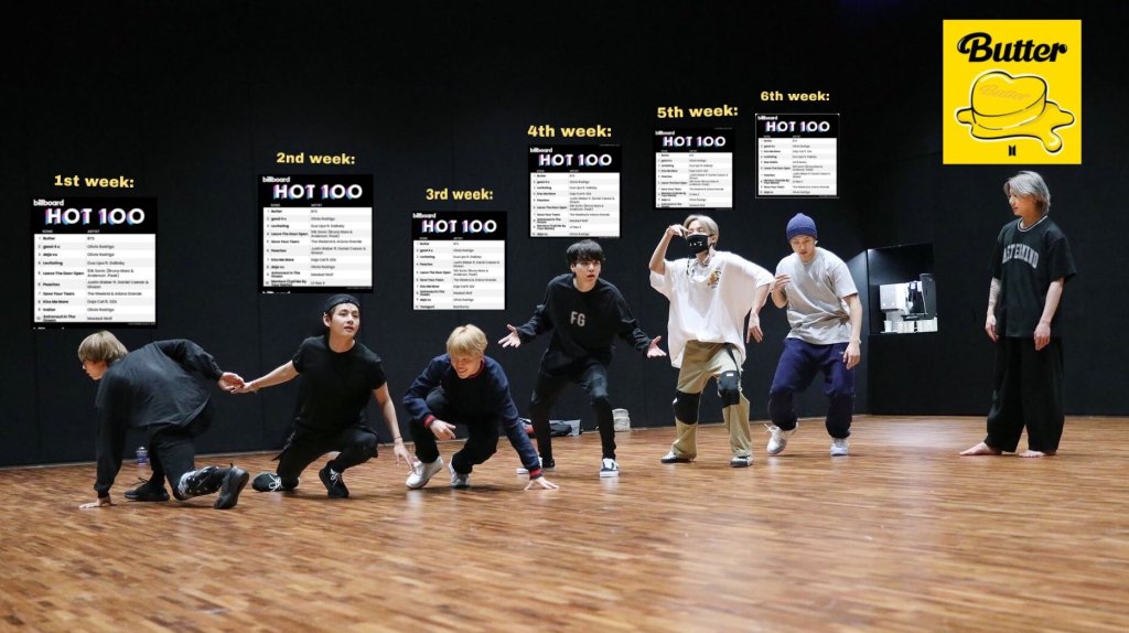 With this sixth week at the top, “Butter” joins the ranks of some of the longest-running No.1 hits in Billboard history. The celebrations online have been joyous and loud, as hashtags like #Butter6thNo1OnHot100, #BTSButter, and #BTSBillboardKings dominate Twitter trends. It’s a proud moment for both BTS and ARMY proof of their global influence, their deep connection, and their shared love for music that brings people together.