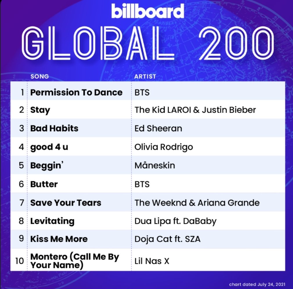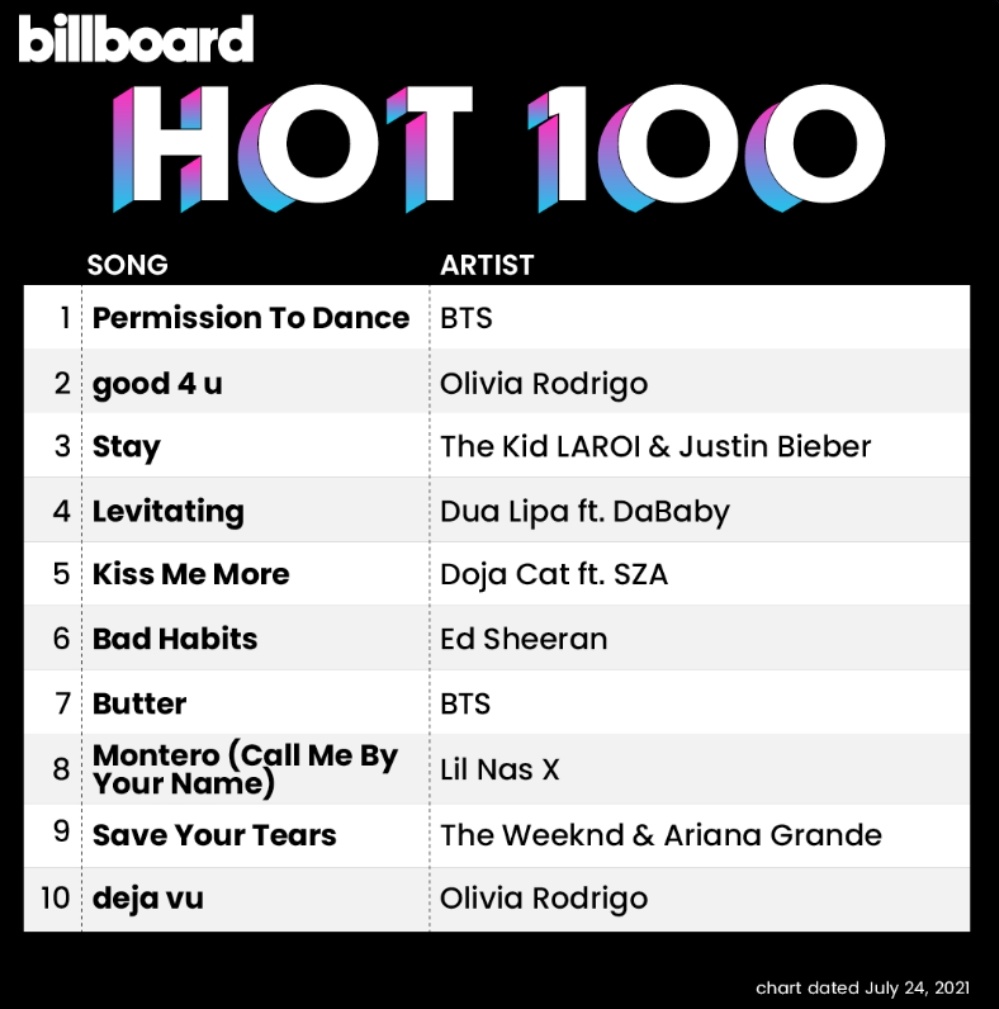 On the global front, “Permission to Dance” also claimed the top spot on the Billboard Global 200 and the Billboard Global Excl. U.S. charts, which rank the world’s most consumed songs across digital platforms and sales. With this, BTS has now earned seven top 10 hits on the Billboard Global 200 more than any other artist officially breaking their previous tie with Justin Bieber.