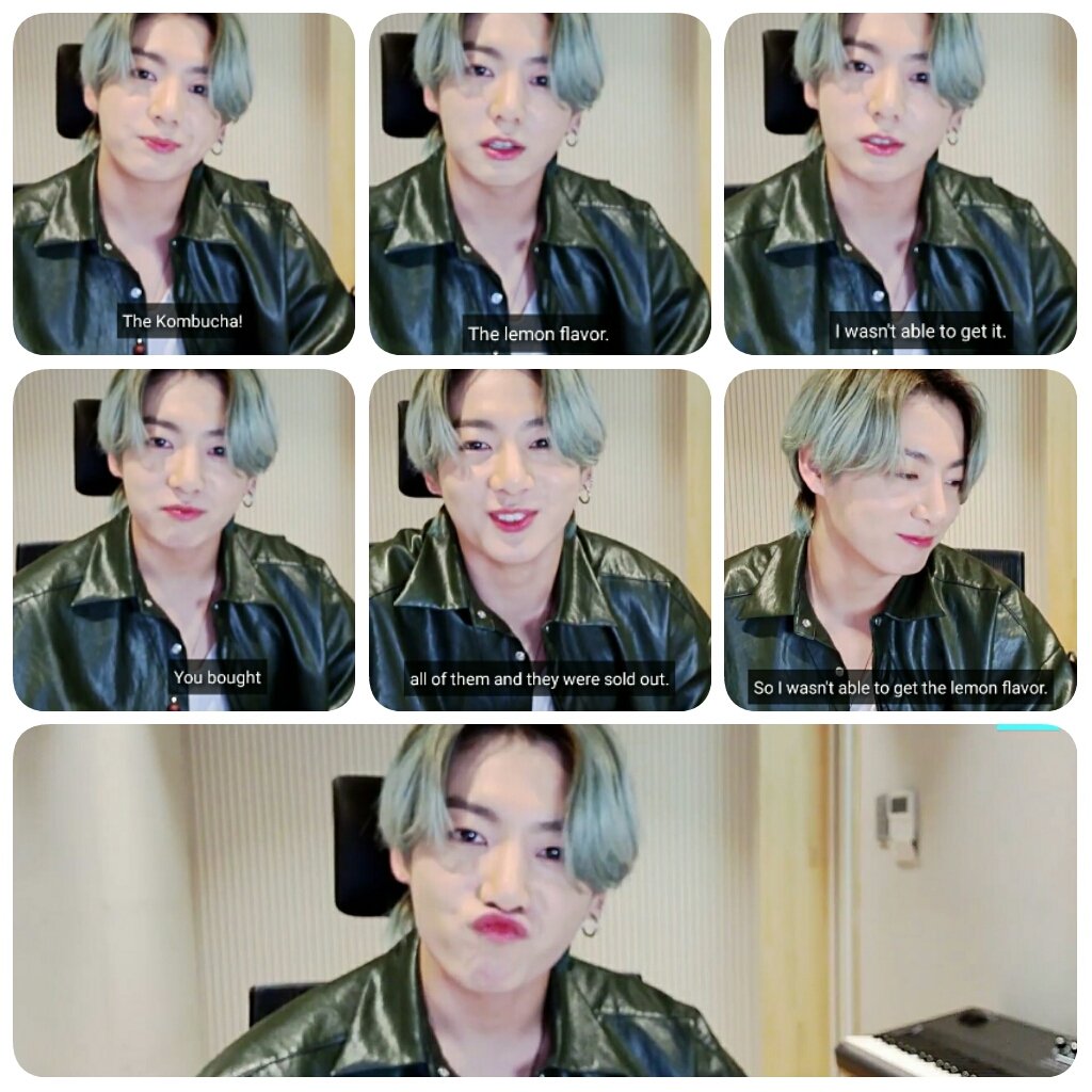 Sequence of BTS Jung Kook’s talking about ARMY selling out the lemon Kombucha that he was only able to get 2 packs. He too thanked the fans for helping him support small businesses especially during the pandemic period.