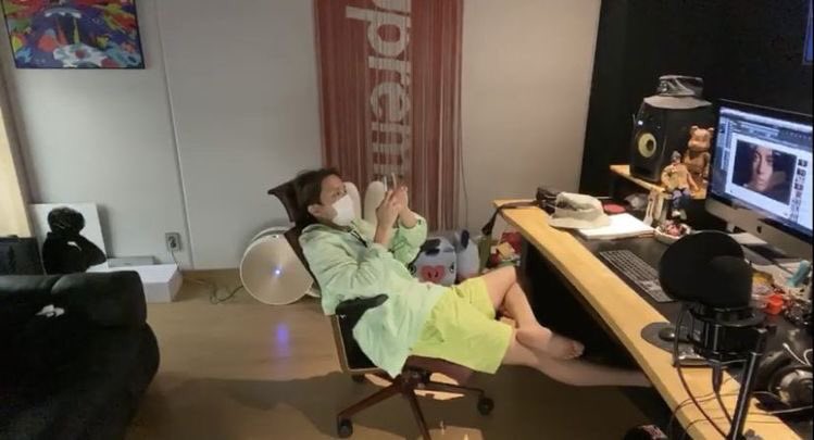 SUGA’s “Genius Lab” studio is moody dark and filled with equipment, the bit that we have seen since the rapper said in his Vlive that he is still arranging it. His studio is sort of vibing with minimalism and is neatly arranged, everything its place sort of way. In his old studio, at some point he had a life size figure of the legendary basket ball player Micheal Jordan. He doesn’t have any art work on his walls or figurines or photos, which gives you the feeling that for him, the studio is a place for work, work and more work, no wonder he writes 200-300 songs in a 365 days year!