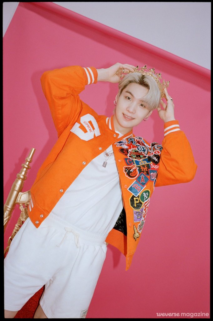 SUGA: “I think people are happier the busier I am, so lately I’ve been thinking that I need to focus a little more. I figure we should do as much as we can for ARMY since they feel happy watching us. We’ll continue to try our best, so I hope they believe in BTS and keep their eyes on us.”