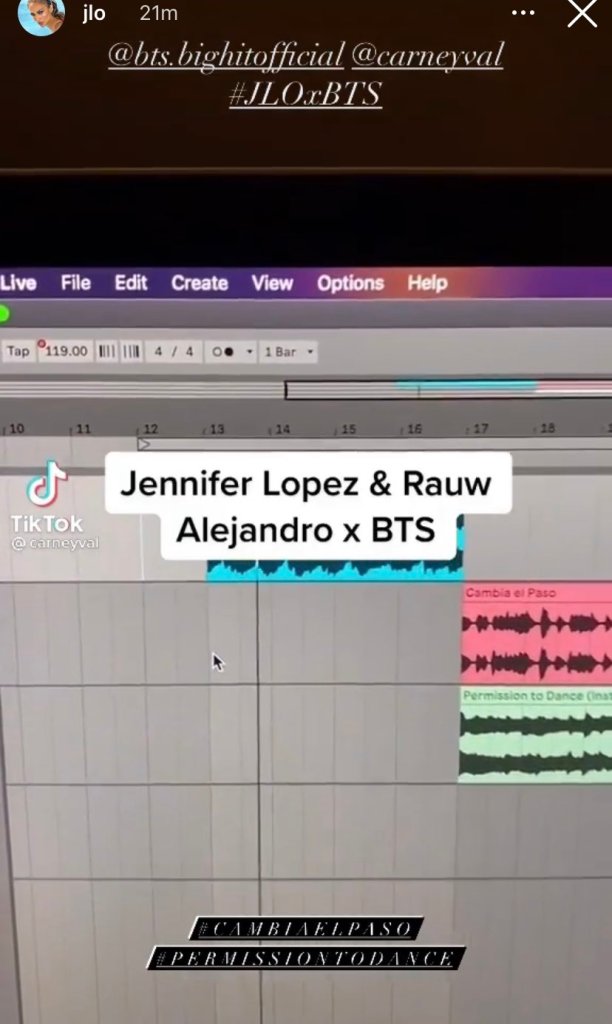 “American singer J.Lo posted a mashup of BTS’ hit single “Permission to Dance” and this has sparked rumors that there could be a collaboration between the two. BTS and J.Lo followed each other on Twitter and she even posted a picture on Instagram with the tags, #JLOxBTS tagging BTS’ official Instagram account. All these are not being taken as coincidences, teasers have been revealed and they ended up being collaborations so fans have their eyes peeled on this one.