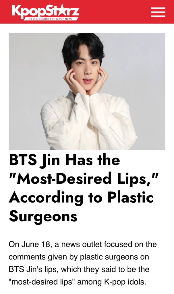 A study or survey even concluded that BTS’ Jin has the most desirable lips according to plastic surgeons. 100% true statement