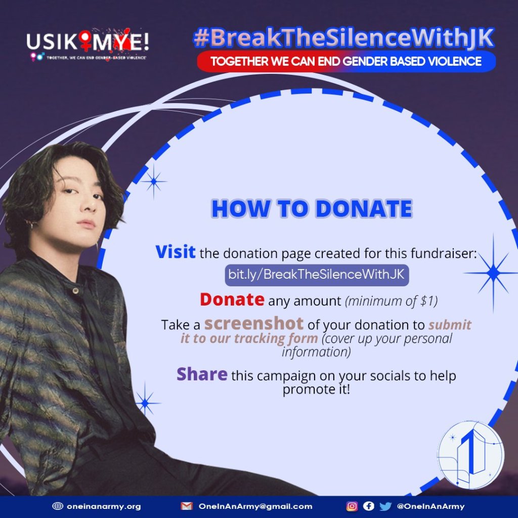 “One In An ARMY is a fan collective of volunteers around the globe. Driven by our shared interest in global superstars, BTS, and the idea of using our collective power for global good, we seek out non-profit organizations worldwide and harness the power of ARMY into giving micro-donations over a one month period”_OneInAnARMY