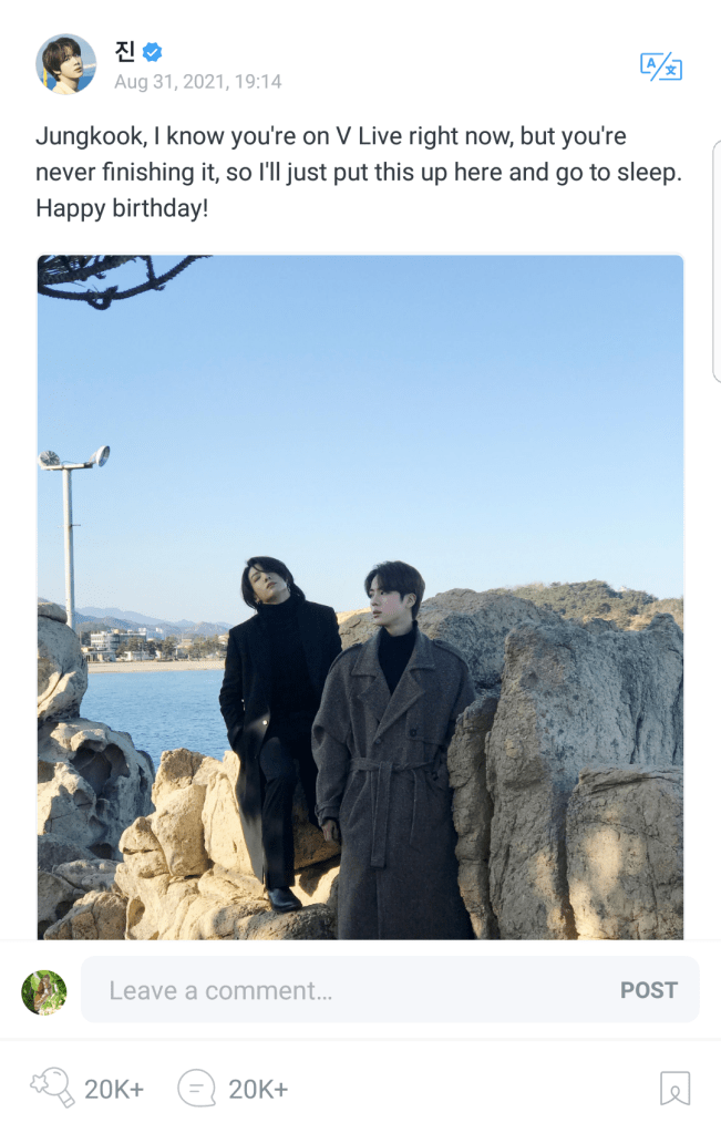 “BTS JungKook’s birthday always officially starts with the members wishing him happy birthday. This year was no different, Jin wished JungKook a happy birthday on Weverse saying he could not wait for him to finish his VLive to wish him a happy birthday, so he left him a cute message instead. SUGA, RM and Jimin posted sweet messages and shared pictures on them together. The world has watched JungKook grow from a boy into the incredible talented man that he has become and I am sure his Hyungs are proud of him. So I decided to add their debut photos with each member wishing his a happy birthday to celebrate the milestone that is adding another year to his life. The 6 members have always been there for him and JungKook has always been grateful for their support, love and sometimes scolding.