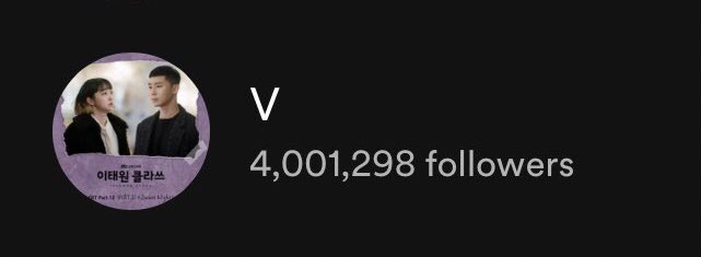 “V BTS’ vocalist has surpassed 4 million followers becoming the 5th most followed Korean soloist on the platform. He has achieved this feat with only two OSTs. He has 600 million combined streams with 5 songs. He has 2 songs with over 150 Million streams and 5 songs with over 70 million streams.