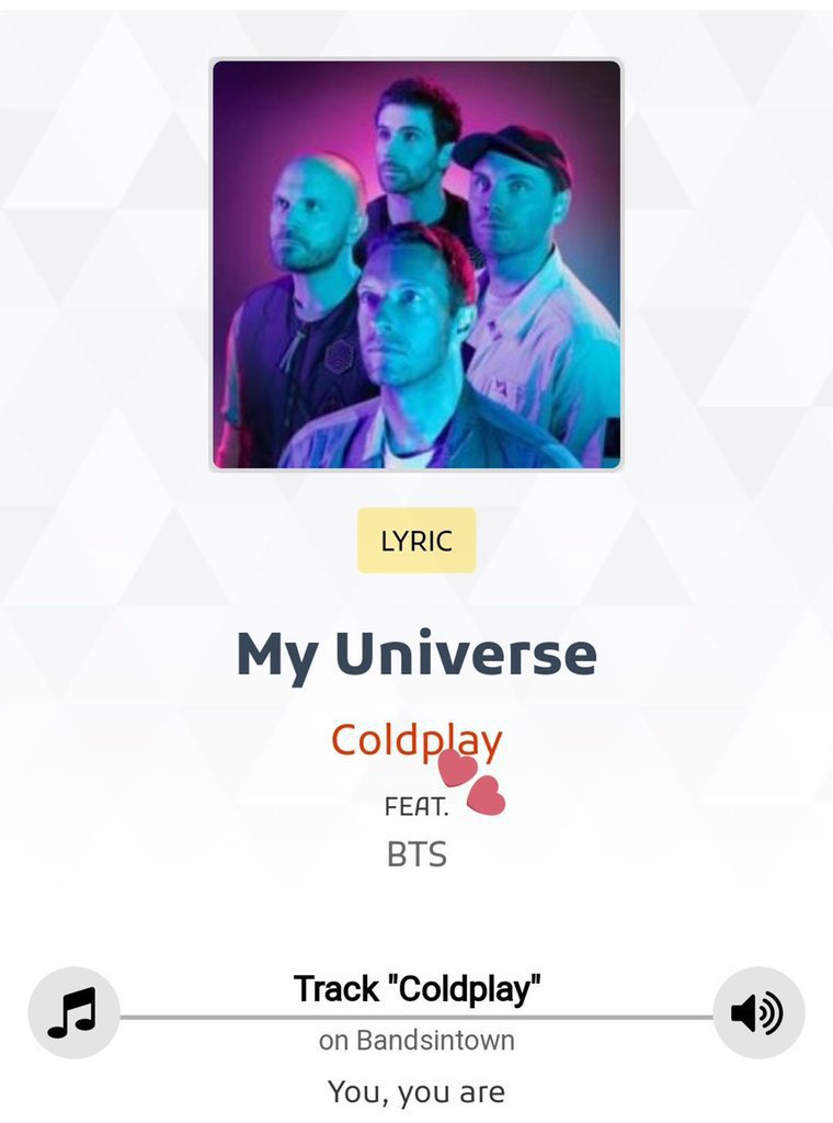 “British rock band, Cold Play has officially confirmed they will be collaborating with South Korean band BTS on a new single. On 13th September 2021, Coldplay dropped the teaser image for their upcoming single “My Universe,” to feature BTS. The single date of releases as been set to be on 24th September 2021. According to the purchase information, “My Universe” will be available as a limited edition two-track CD single (The two tracks are “My Universe” and the instrumental version.) and a special addition where the inside cover will include a reproduction of handwritten lyrics by both bands Coldplay and BTS. hhhah