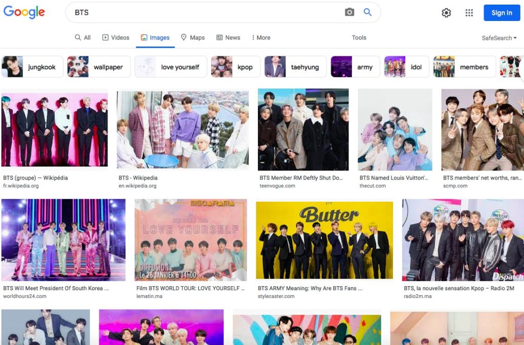 Another search result on Google about BTS