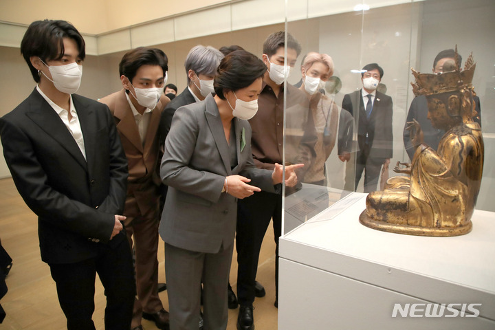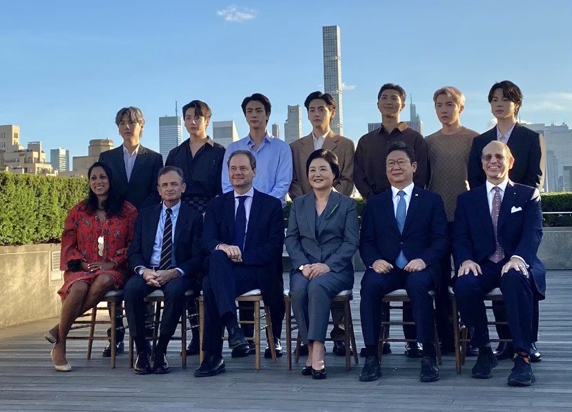 “BTS have been in New York as Special Envoys and have given their speech at the 76th UNGA. As part of some of their activities in New York, BTS visited the Metropolitan Museum of Art of New York City accompanying South Korea’s First Lady, Kim Jung-sook to celebrate the artisans of Korea. During the visit they presented Chung Hae-cho’s “Rhythm of the Five Color Luster” as a gift. The five richly colored lacquer-ware vessels will be displayed at the museum from December.