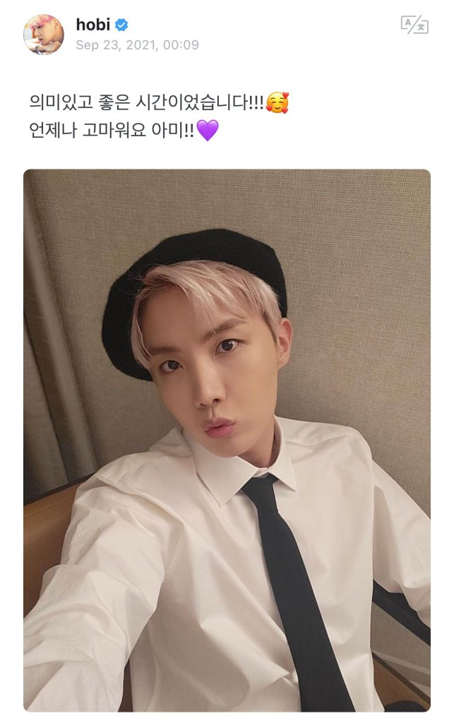 “It was a meaningful and great time!!! 😙 Thank you always ARMY” j-hope