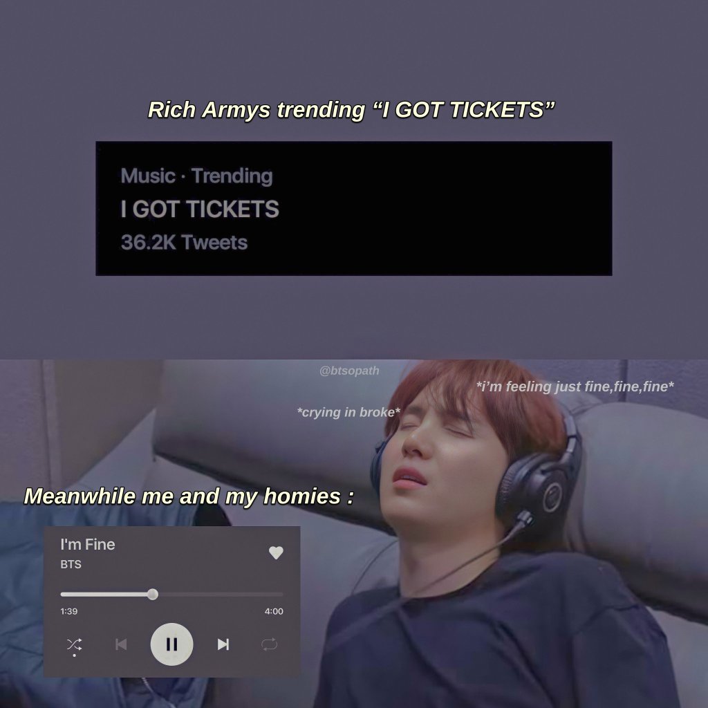 Ticket purchase is now like the Hunger Games since BTS ARMY have quadrupled in number, so for those lucky enough to get them kudos! for the rest of us we support and feel like ‘if they got them, then we all got them’ kind of mentality…all lies! As a result of this “i got tickets” “i’m gonna see bts” “i got barricade!” “omg i got sound check!” are currently trending worldwide.