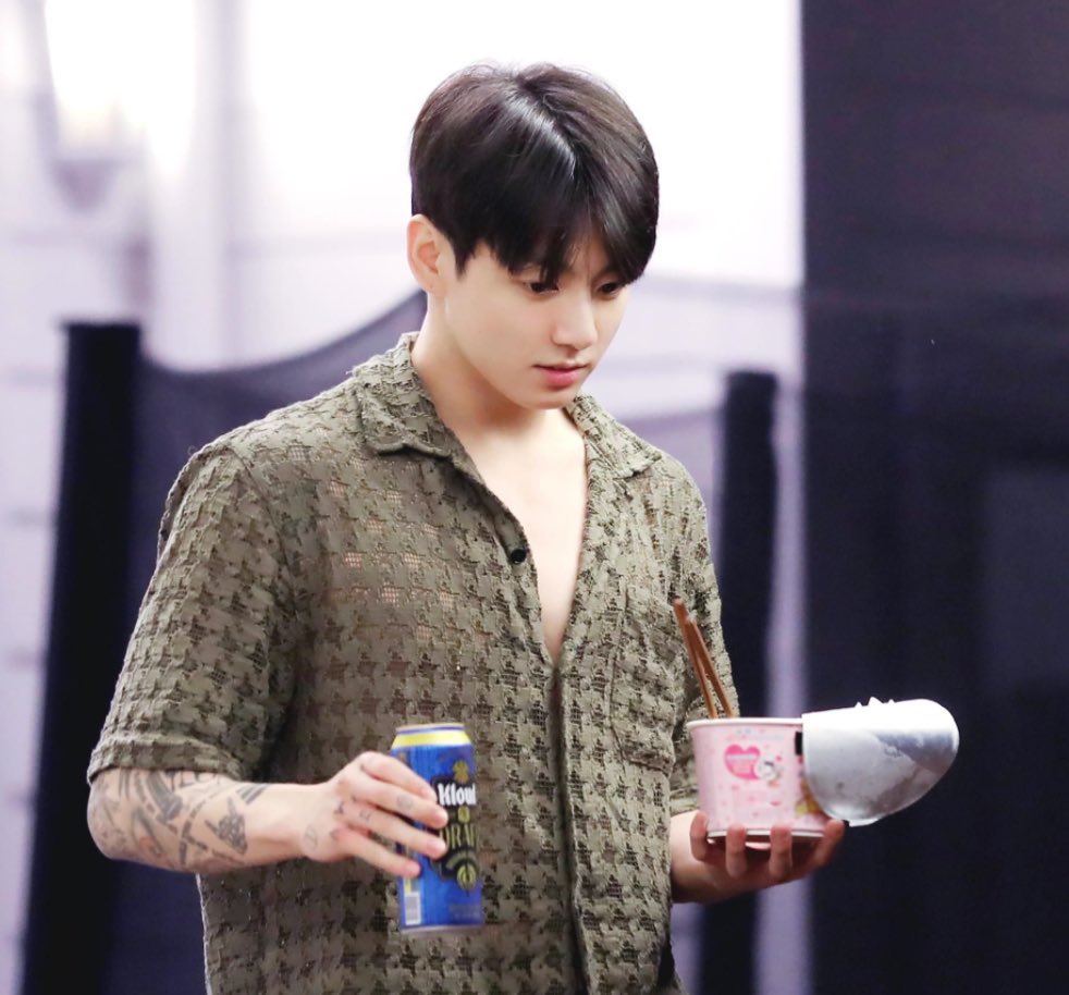 On 16the October fans started sharing closeup pictures of the BTS maknae’s see through shirt. On the pictures on the right side of his chest, there’s a shiny metal item peeking through the holes on the pajama shirt. It looks like a piercing but then someone pointed out that it could be just his in ear mic, or a fabric. Majority believe its a nipple piercing which resulted in “NIPPLE PIERCING” trending under Music category with over 13K tweets so far and “JUNGKOOK NIPPLE PIERCING” with 1K tweets trending