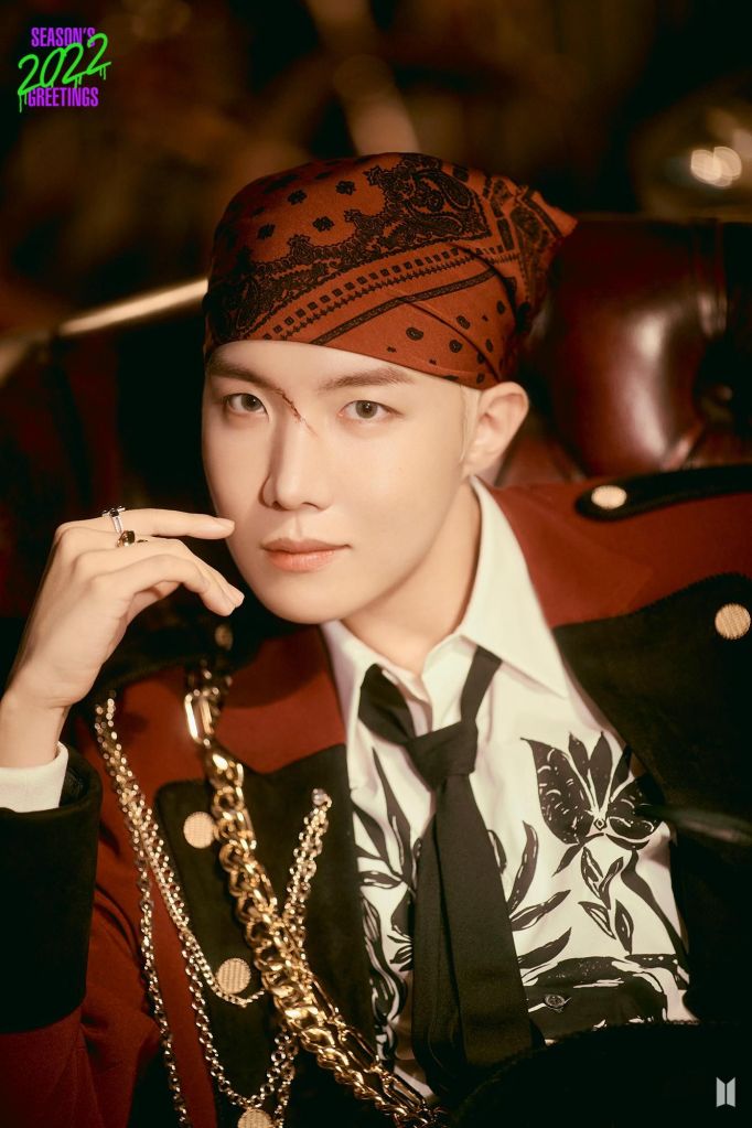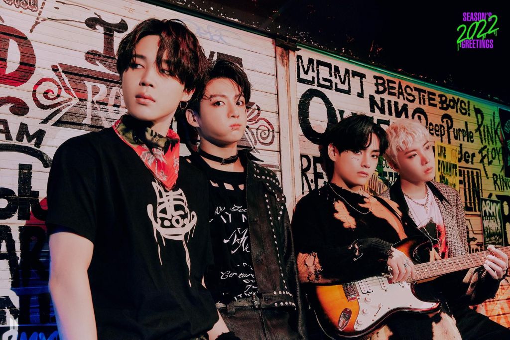 “They came and saw and conquered, ARMYs hearts. BTS are know for their elaborate concepts when in comes to their music careers, Whether it be for a music, video, campaign, show or concert, they will always up their game and bring the most in very shoot. Having spanned a career of 8 years, one would think that they would be out of ideas on what concept to choose to build on, but not these seven men. Even RM answered that very question when he was asked in an interview about fan’s expectations of their artistry after such a long time in the music business. Instead of deterring their efforts, that pressure to reinvent themselves is what keeps them churning out new incredible never seen before concepts. For their 2022 SEASONS GREETINGS BTS are churning out their inner Rockstar’s with a concept that is bold, full of prints, gothic vibe and moody Halloween like aura.