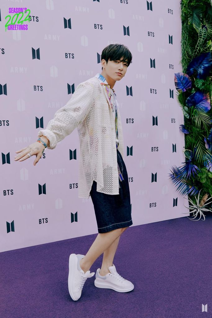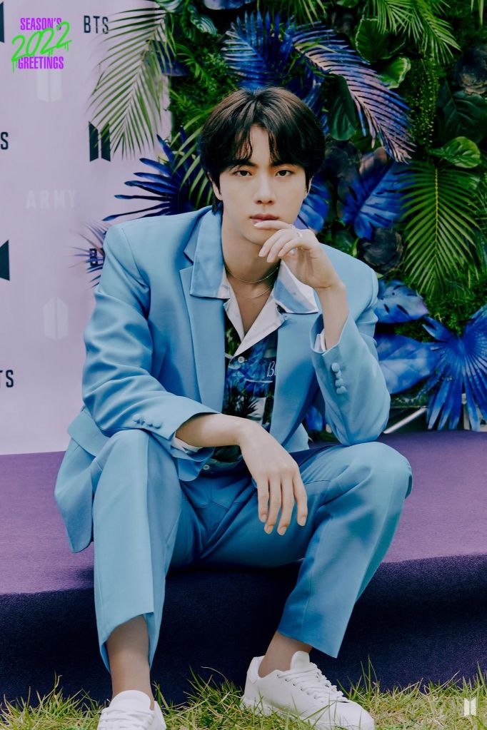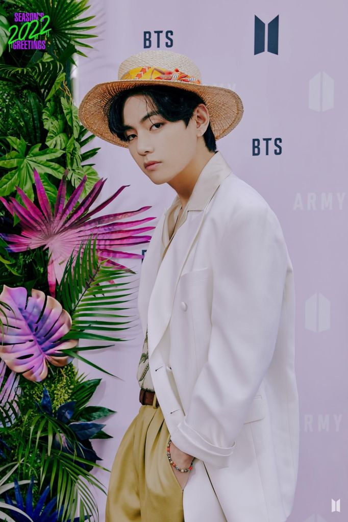 “BTS are once again serving new incredible looks in their version 2 of their “2022 SEASONS GREETINGS” preview cuts. In their part 1 they all had Rockstar vibes oozing out of their outfits and setting. In part 2 they have added a new look where they are posing at a red carpet like event with a background that is giving tropical vibes. The two have new added another photo collection of the grungy style plus casual wear, fitting suits and pastel colors, two sides of the same coin. They are sexy villains and classy gentlemen. The duality is insane! See all the amazing shots!