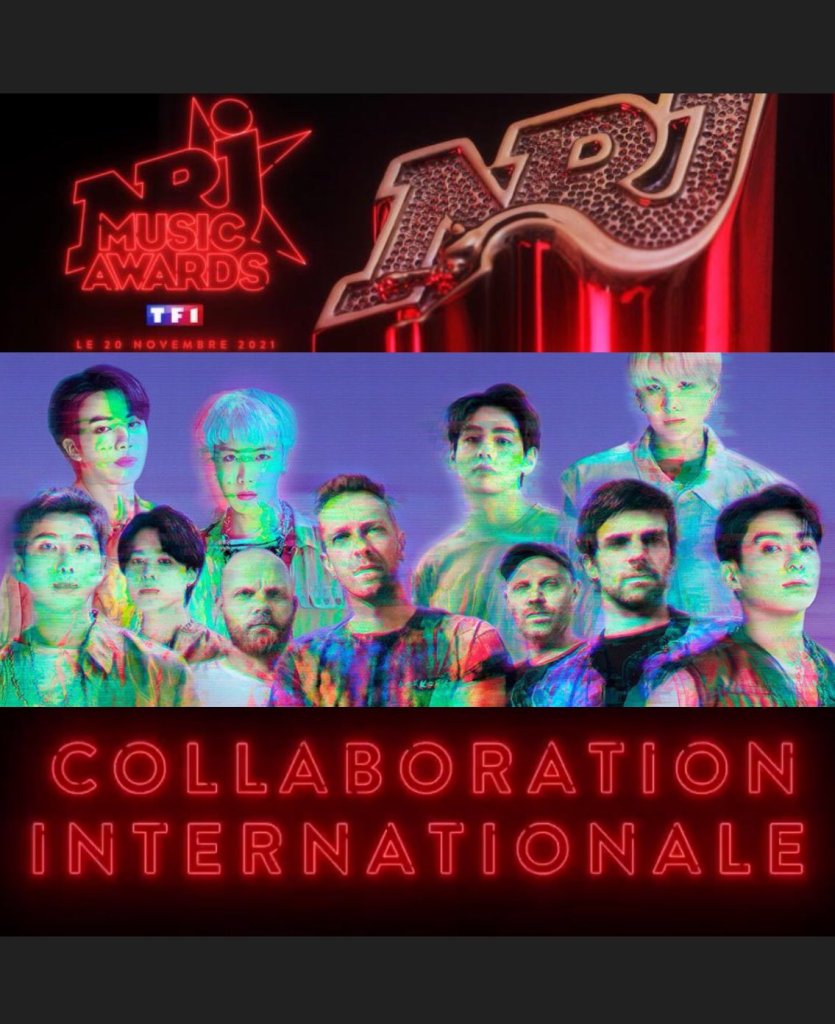 “Congratulations Coldplay and BTS for your win at the NRJ awards. Coldplay and BTS were nominated for this year’s NRJ Music Awards in the “International Collaboration of The Year” for the song “My Universe” and they have won the award. Coldplay accepted the award and gave their acceptance speech which was translated in French. This is BTS’ second award as last year they won “International Group/Duo of The Year” at the NRJ awards, which was their first ever award in France.