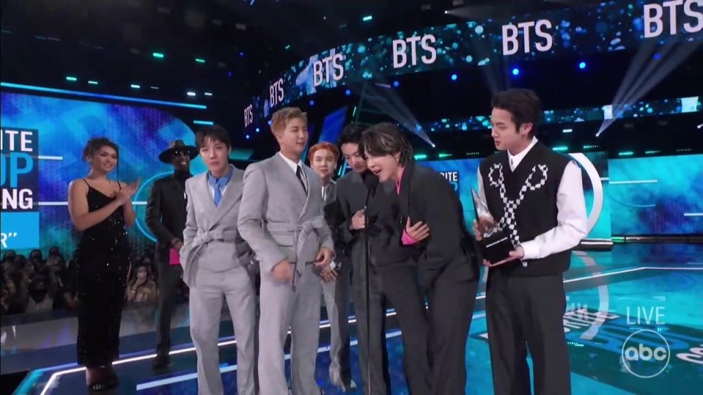 Both Jimin and Jung Kook gave their acceptance speech in English thanking fans for loving the song. BTS were up against Doja Cat ft. SZA “Kiss Me More”, Dua Lipa “Levitating”, Olivia Rodrigo “drivers license”
