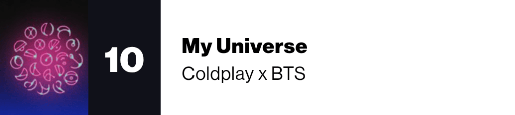 2021 saw BTS easily achieve three Billboard Hot 100 chart-toppers that includes, their second all English song “Butter,” their third all English song “Permission to Dance” and their collaboration with Coldplay “My Universe“
