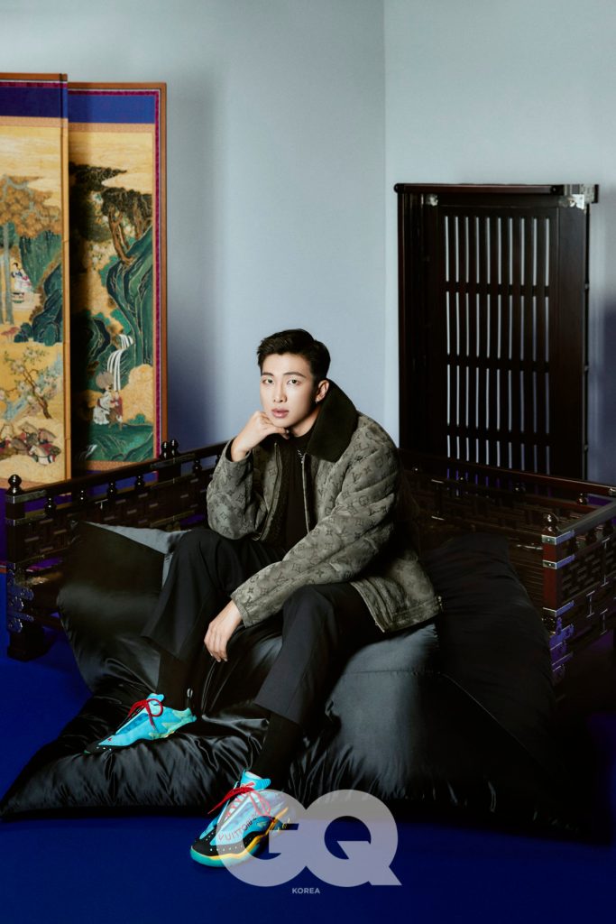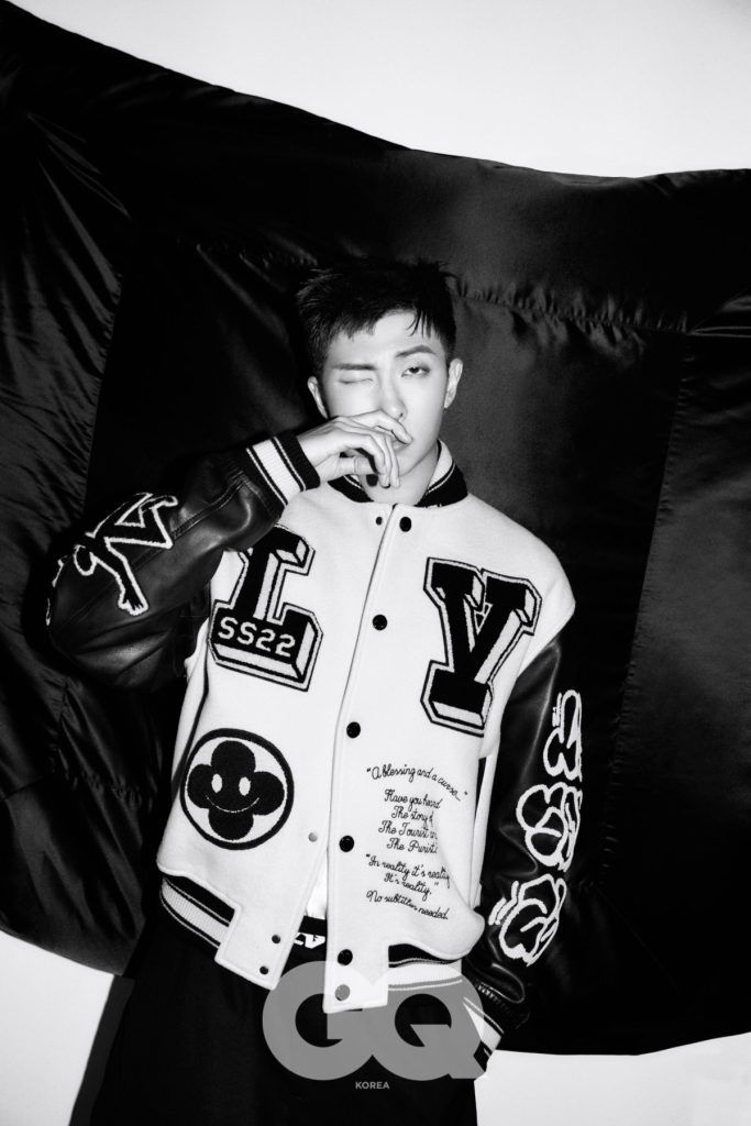 RM These days, talking about art is the most fun, because yesterday I had such a time with my favorite hyungs. Talking about something only we know. (dimple laughs)