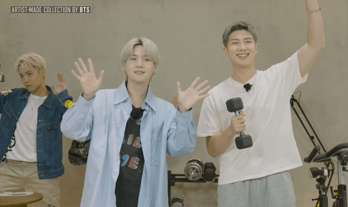 “RM introduced his merch collection and was joined by his fellow members, SUGA, j-hope & Jung Kook who were the perfect, funny models. We had Jungkook working out wearing army jogger pants and j-hope ringing the wind chime, at the end there was SUGA fake laughing while grinding those beans and RM was shoving those dumbbell to the jogger pants pocket. I introduced practical jogger pants that are perfect all seasons and an extremely cute wind chime, and we’d always think about army’s whenever we wear this. You can watch the full episode here