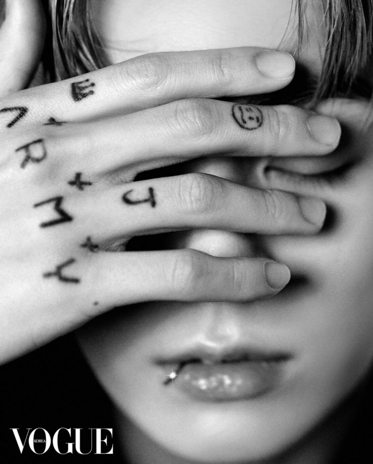 “Just like when I was little, I am still warmhearted and trust people well. I give my all to those I love until they break my heart. My members acknowledged this. Sometimes, I worry that something will happen, but fortunately, I have my members to lean on. But if I rely on them too much, it’s like I’m hiding behind them, so I need to find a balance” Jung Kook