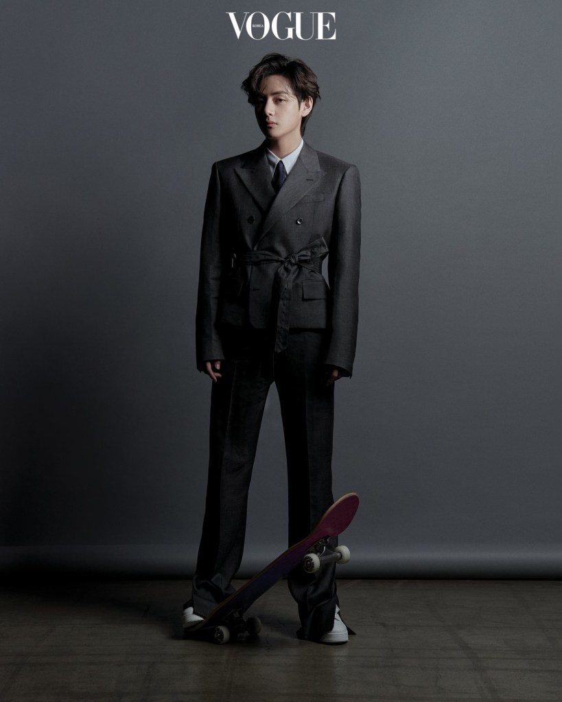 “I wrote that my future dream job was becoming a singer since I was in elementary school, but nobody took me seriously, saying, ‘How could you be a singer?’ However, BTS is the team that made that dream happen. They say that you can’t make a career out of something you like ordinarily and that you should leave it as a hobby. However, I don’t think that. Since I’m doing something I like so much, I practice if I feel that I’m lacking, and I grow again through that. Furthermore, I’m doing something I like, but people like seeing that. I think that itself is really meaningful work.” V