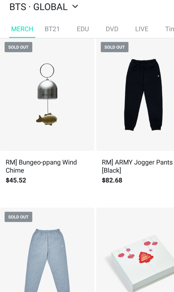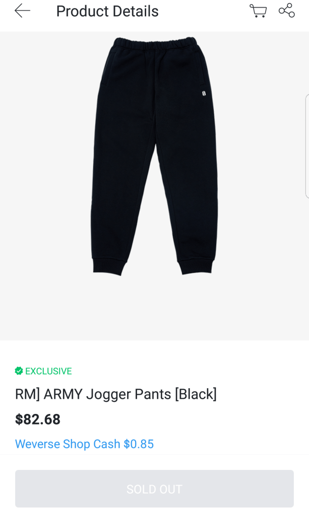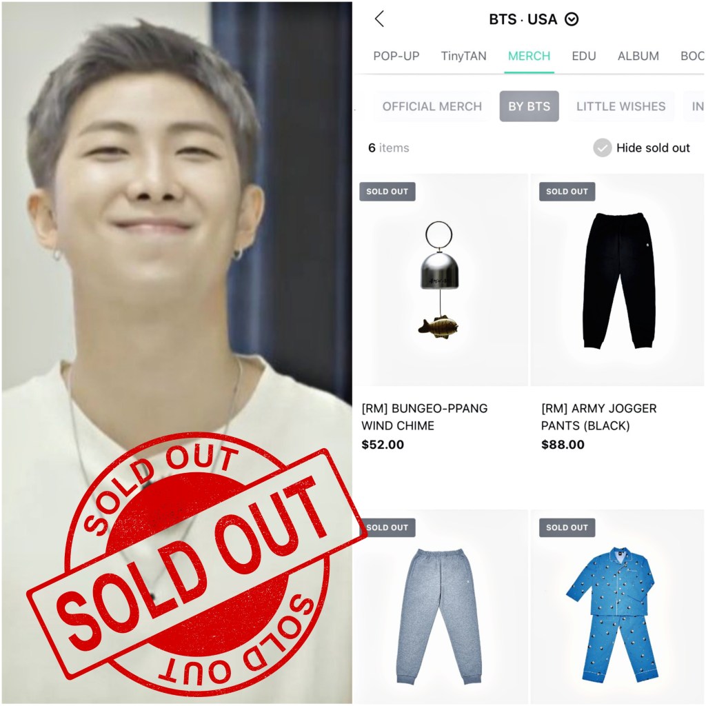 “It seems ARMY have been waiting for the sale date for RM’s merch that includes a wind chime and two jogger pants on grey and black. As soon as the Weverse Shops were open and the merch shown as available, RM’s merch flew off the shelves like hot cakes. Even the wind chime that RM had said that it wasn’t a modernized item and didn’t think people would be that interested in it! Seriously?