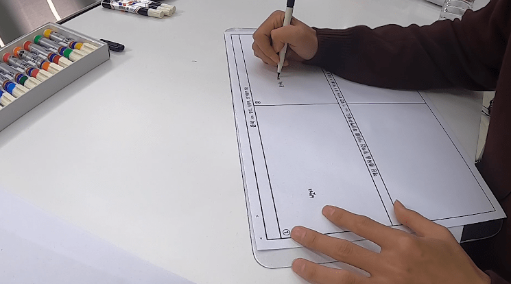 “I’ve made up my mind (on badges) I’ll draw it again. I want the one on the bottom to be a bighter blue… make it look like a flower and a cloud. I like drawing cute pictures. I really like it. It’s like Andy Warhol. I think we should call it ‘Flower Series’ in English. And this one we can call ‘Cloud Series’ For these so and so Faces” V