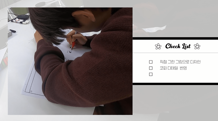 “I still want to do the Boston bag and badges that you can put on jackets or on bags. I think it’ll be easier to put on… you could carry it around everyday . I think matte green would be nice as an accent color. Badges, we could make them based on my drawings. Badges are really useful items and I think you can use them with ease whenever and wherever on a daily basis” V