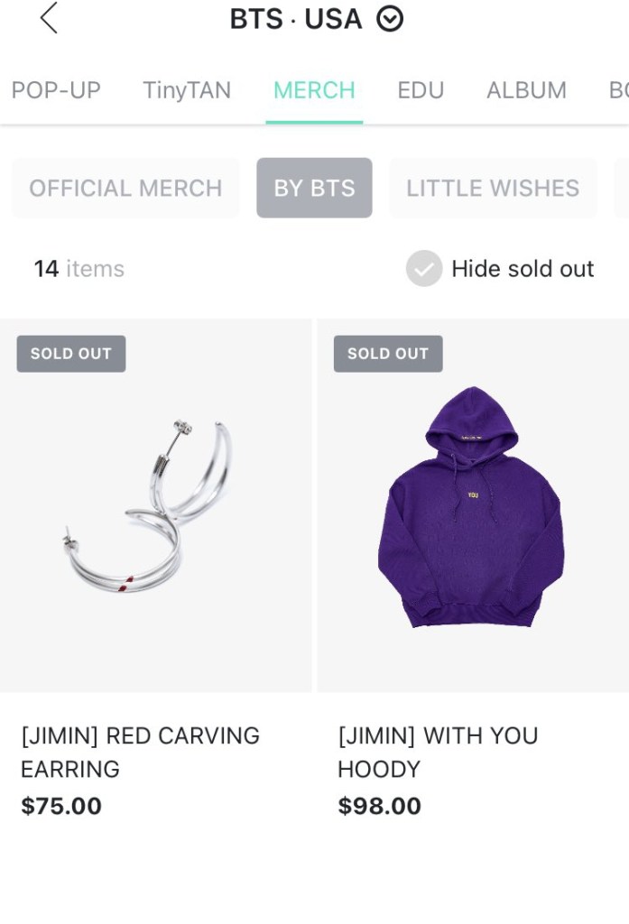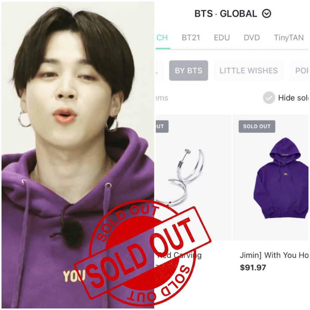 “Jimin has officially sold out his first ever custom design merchandise even before the official release time. The collection was set to be released at 11.00amKST but by 10:59 KST the merch was already sold out. Jimin’s “With You Hoody” and “Red Carving Earring” are no longer available on the Weverse Shops, Global, US and Japan. The demand for Jimin’s itmes led to the Japan site crushing due to heavy accessa as fans try to get their hands on any if all the items.