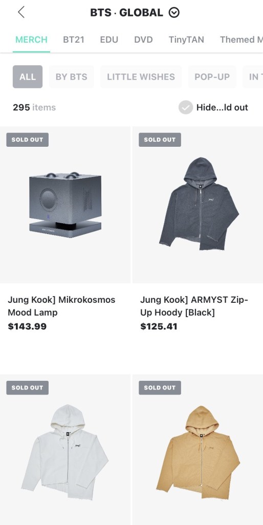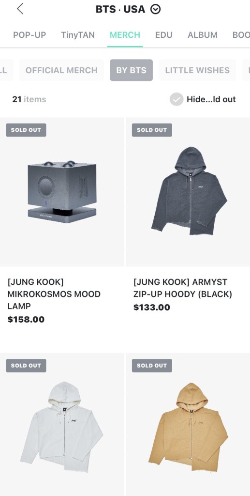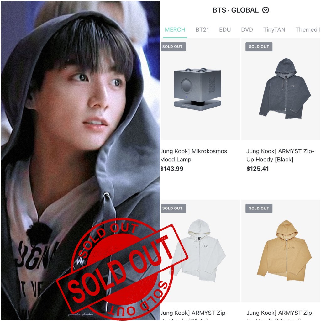 “Blink! And it’s gone! That was the case for BTS’ Jungkook’s merch as soon as his merch was available on Weverse shops. JungKook’s “Mikrokosmos Mood Lamp” and “ARMYST zip up hoodie” disappeared from the shops in less than a second after being available. Fans had been anticipating his unique merch as soon as they were announced, proving again that Jung Kook’s brand powers is truly on another level. All five hoodies plus the mood lamp sold out leaving fans wanting a restock.