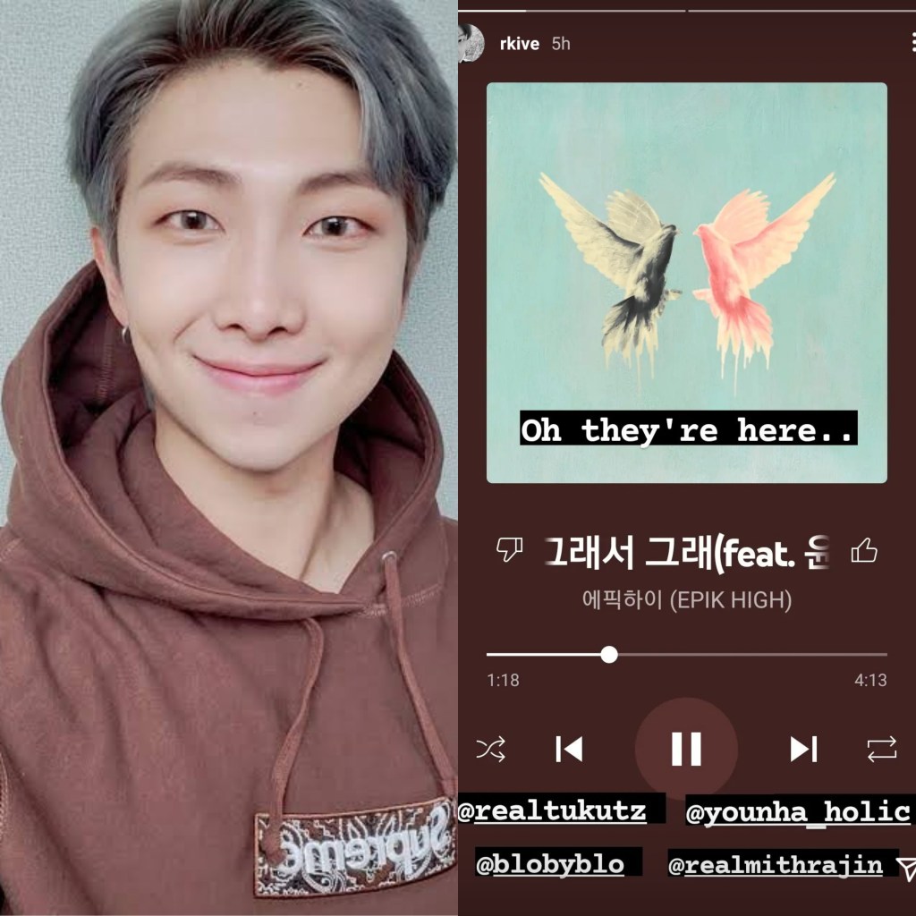 “Gray So Gray” by Epik High (Feat. Younha) is the latest song recommendation from BTS’ leader Kim Namjoon, also known as RM. The rapper shared the track on his Instagram stories, drawing attention once again to his impeccable taste in music. RM’s appreciation for meaningful lyrics and emotionally resonant melodies shines through with this choice. Notably, RM has collaborated with Younha before on the touching track “Winter Flower”, which was released in 2020 and gained widespread praise for its poetic depth and moving message.