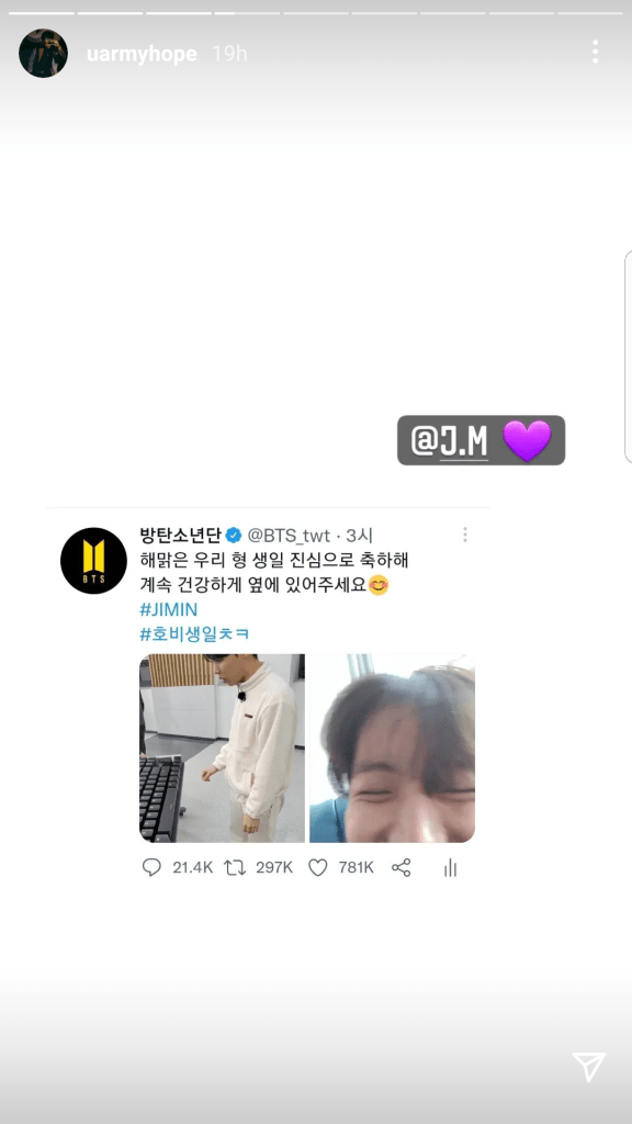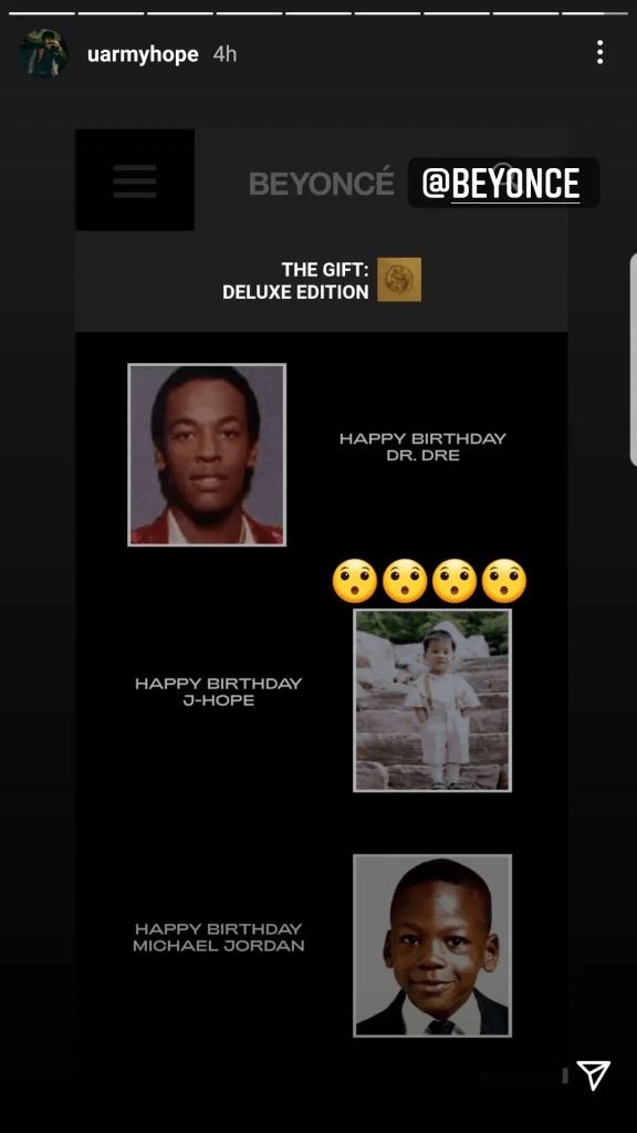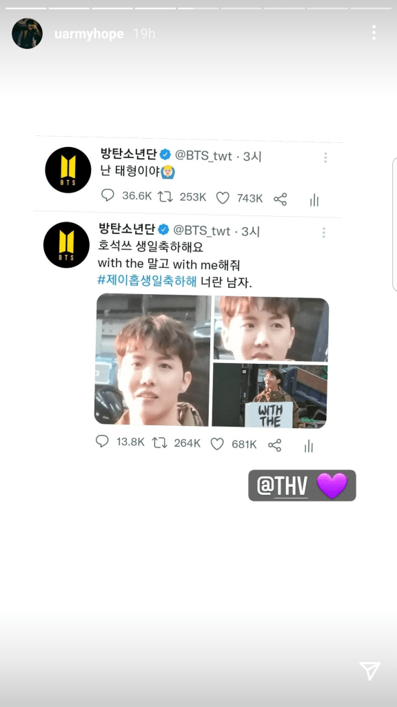 Among the celebrities that wished j-hope a happy birthday was Mega US artist Beyonce. She posted in her website a cute baby picture of j-hope with the caption “happy birthday j-hope” which j-hope also shared on his IG stories. Fellow band member Jung Kook had earlier featured in Beyonce’s September year book issue