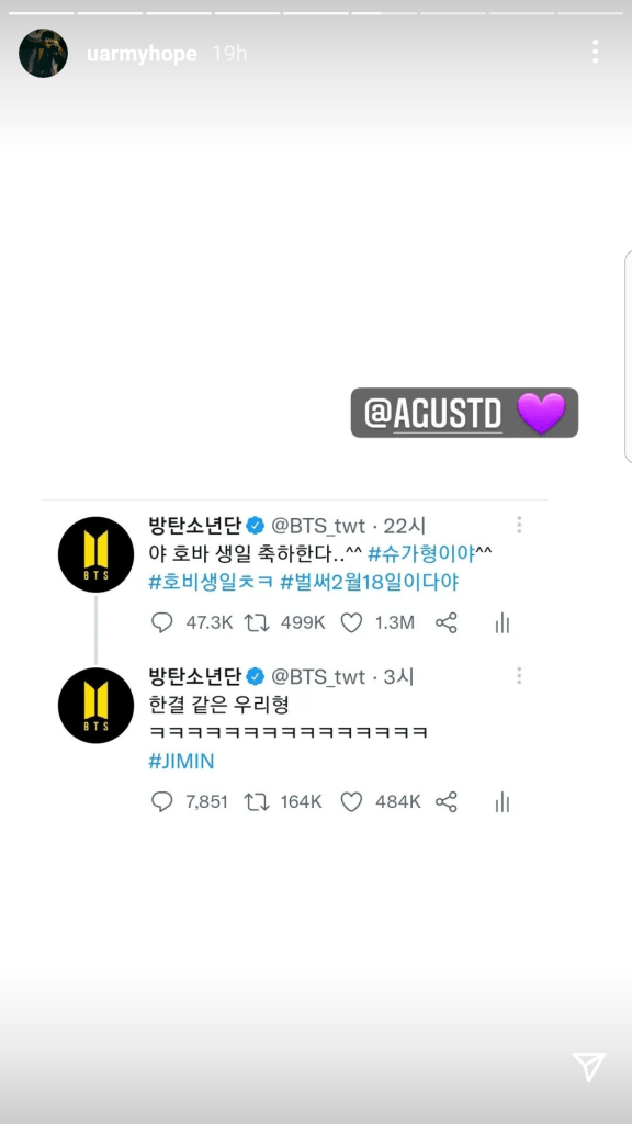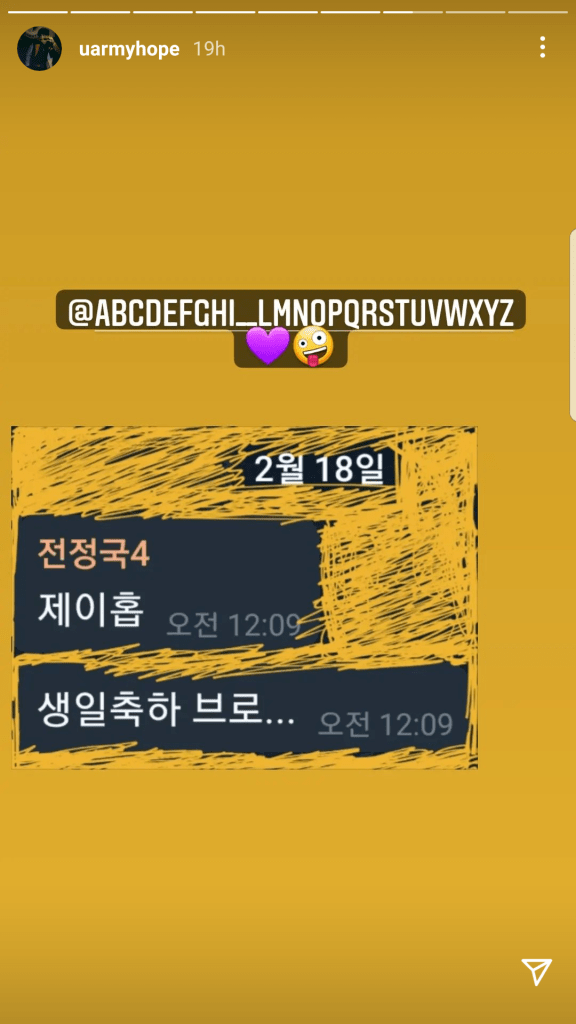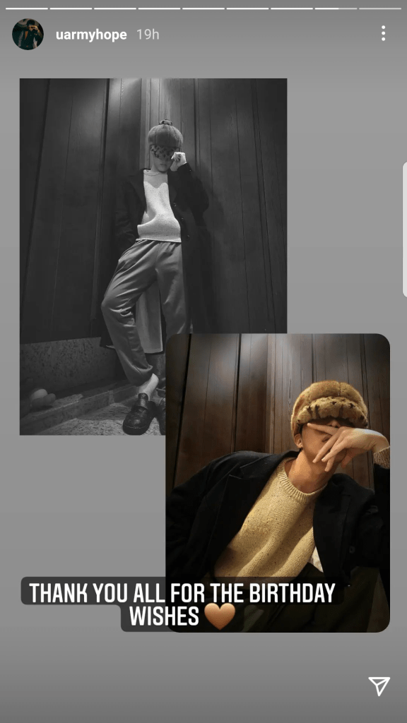 “j-hope (Jung Ho-Seok) rapper in BTS celebrated his birthday on 18th February and received birtday wishes and messages from ARMY, other celebrities and his fellow band members. j-hoped thanked everyone that sent him the birthday wishes and went a step further posting on his Instagram stories screenshots of each BTS’ member’s wish for him on his special day.